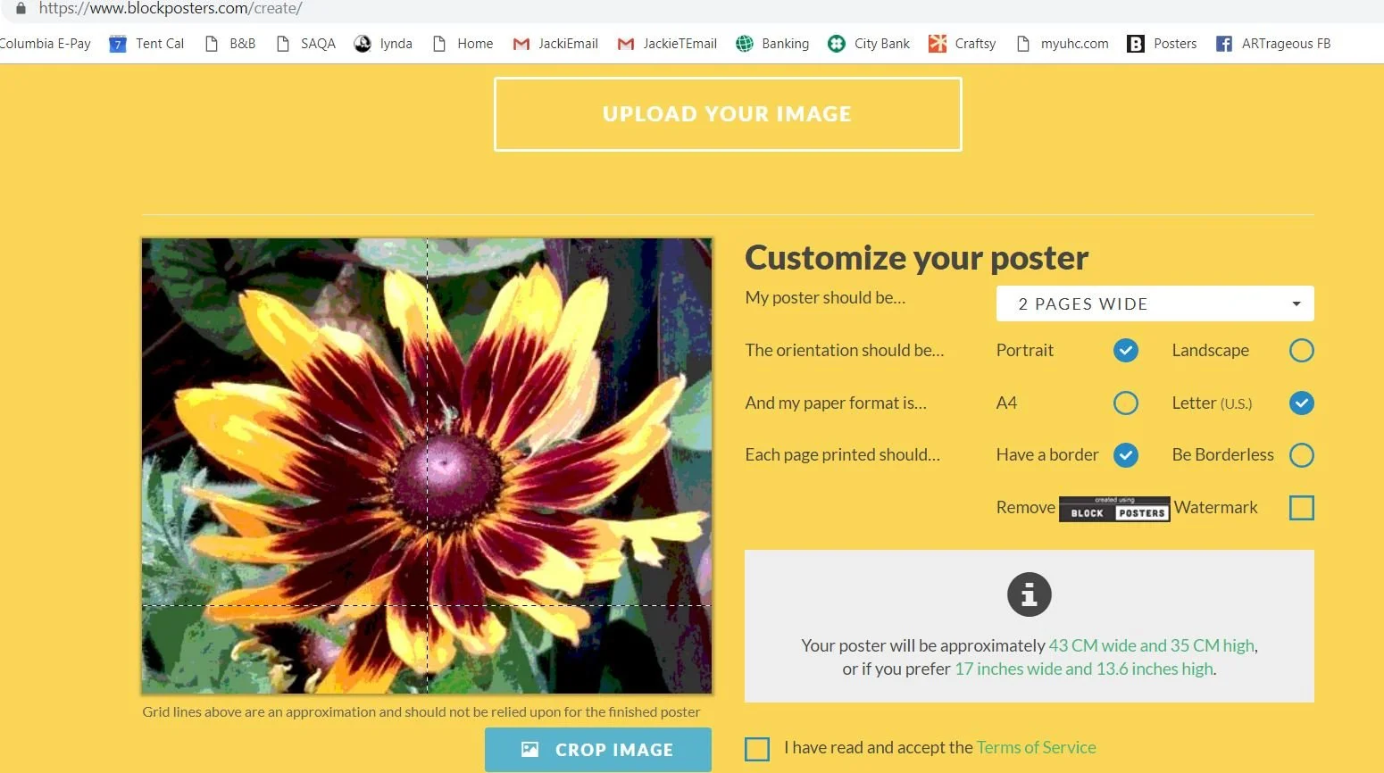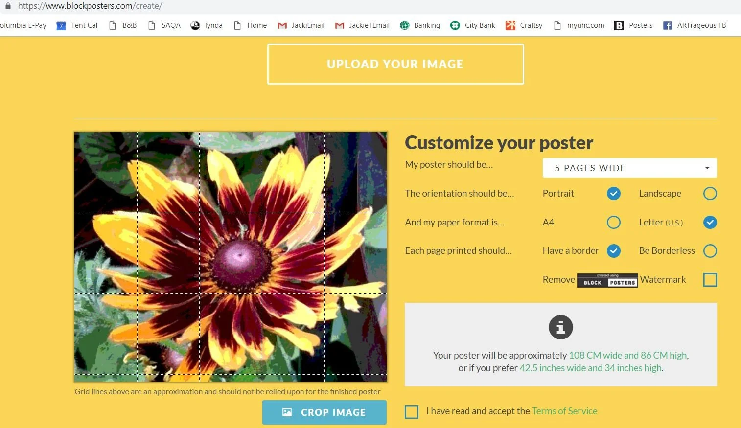 Then go to www.blockposters.com. You upload your picture. It takes a second.