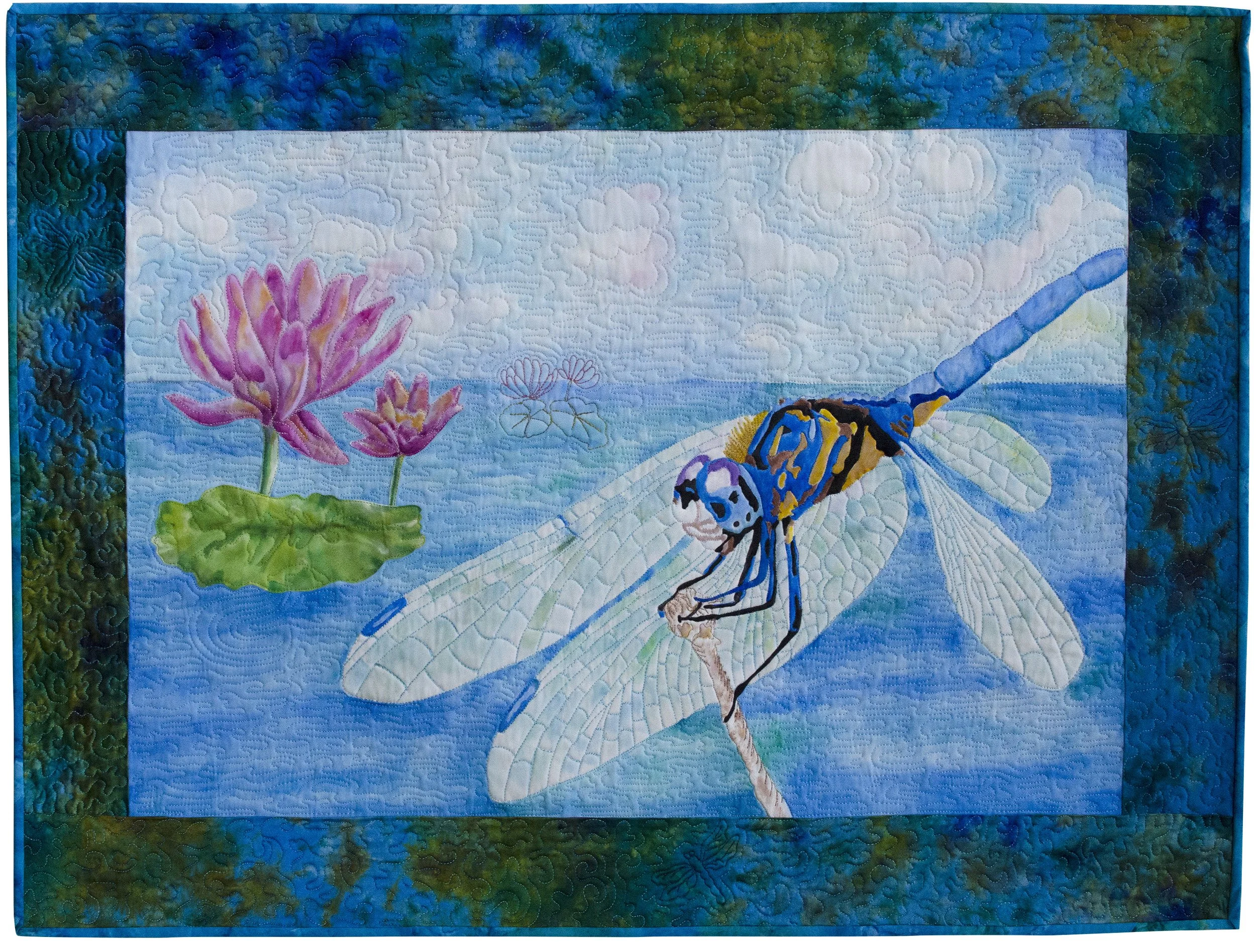 “It’s Breaktime For the Blue Dasher," juried into Mancuso Mid-Atlantic Quilt Festival, Hampton, VA, Feb.27-March 2, 2025