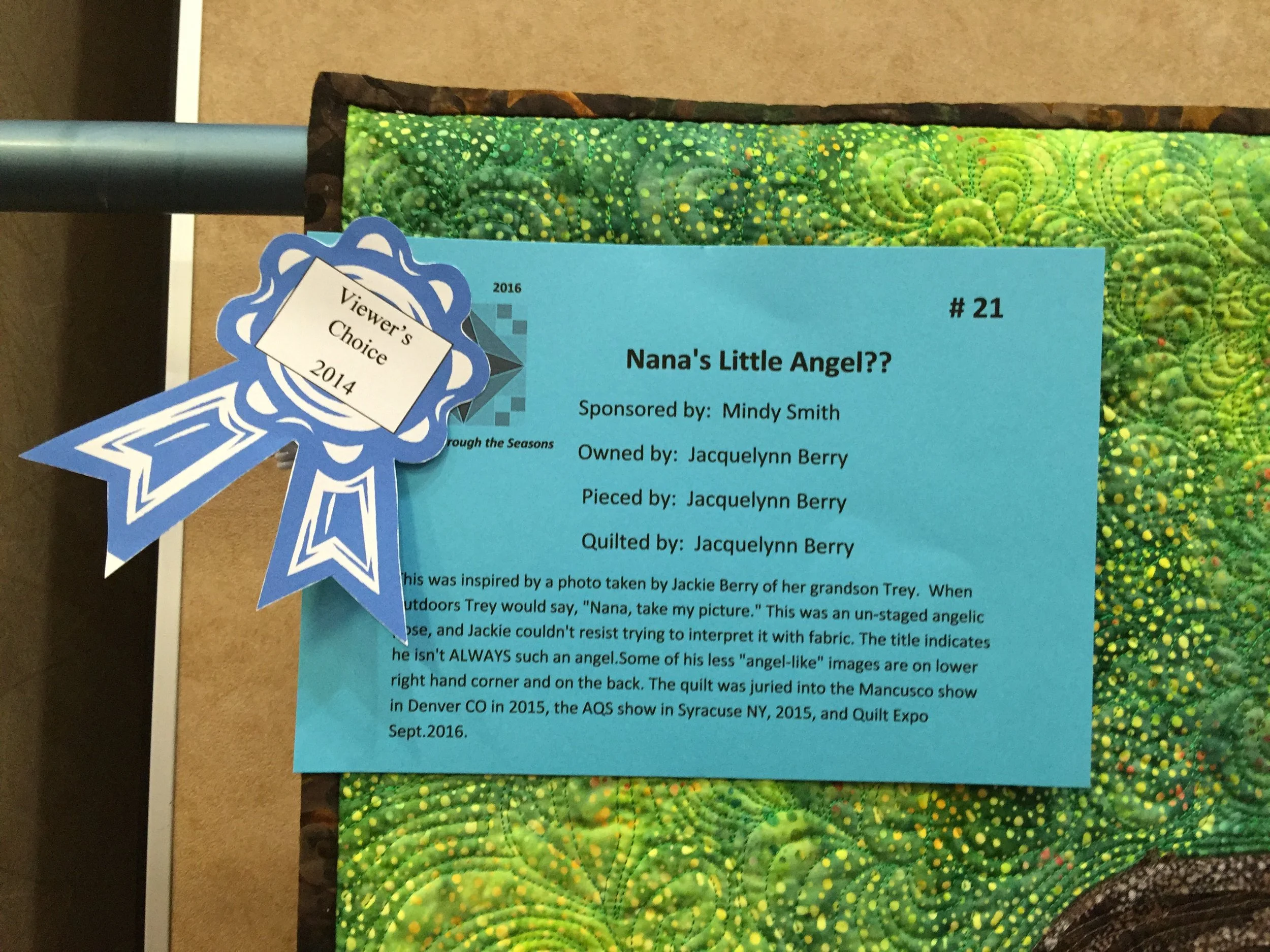 "Nana's Little Angel ?? " won Viewers' Choice for wall quilts in the BTQG guild guilt show in Columbia MO, Oct. 2014