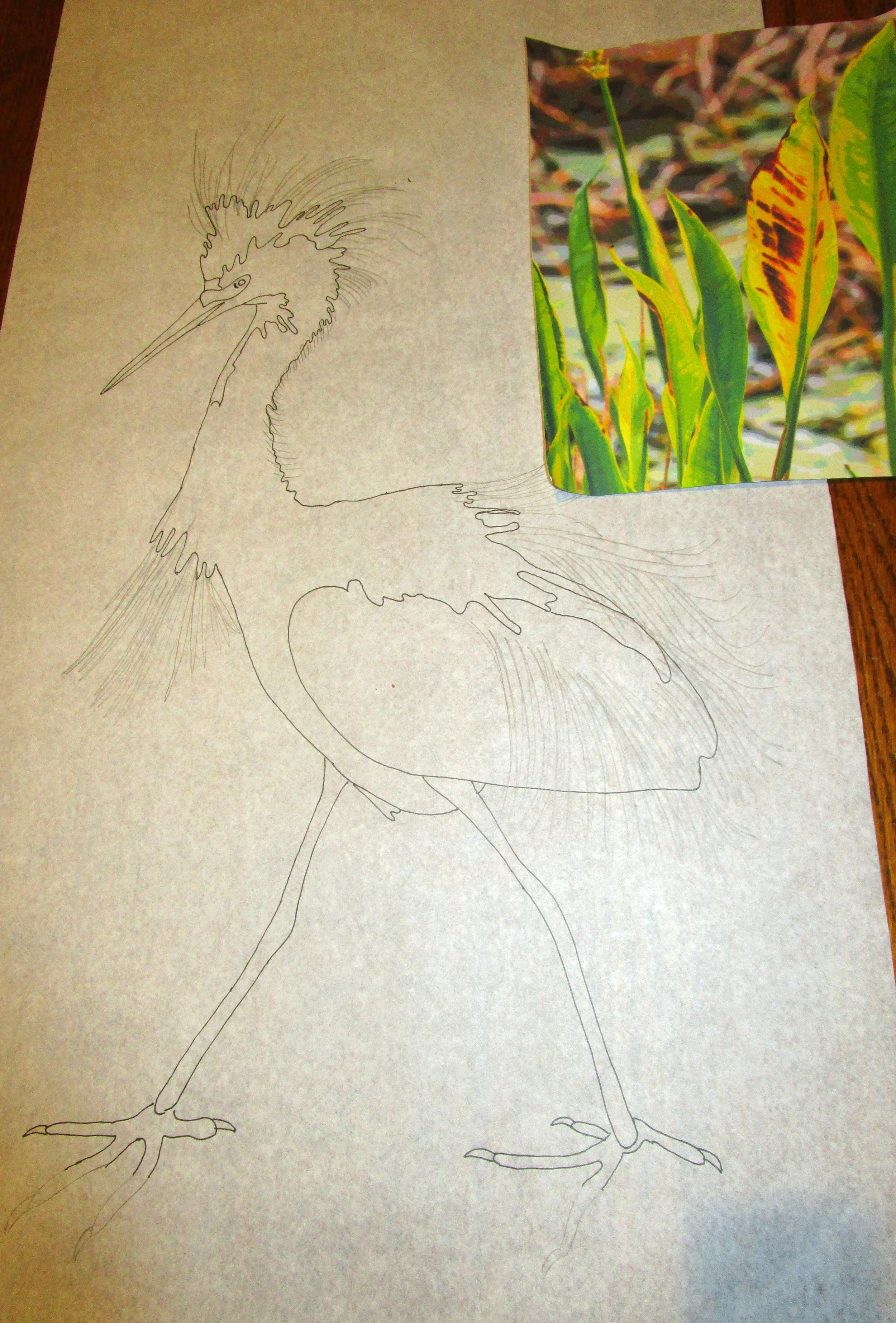 I chose to do one of my favorite little bird, the cheerful, strutting little Snowy Egret. The Audubon society was actually founded to protect such birds for their feathers. Their plumes or aigrettes, sported by the little Snowy Egret were prized for ladies' hats. It's obvious why. I took this particular little egret's photo in Orlando FL. I hoped to capture the beauty of these little birds during mating season. However, nature does it best.